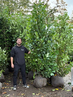 Cherry Laurel is fast-growing, hardy, and easy to maintain, needing just a light trim once or twice a year to keep its shape. Perfect for creating a tall, dense hedge that gives privacy, reduces noise, and shelters your garden.