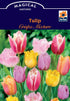 A mix of vibrant bright coloured flowers on top of stocky green stems, the top edges of the tulip are almost uniquely frilly.