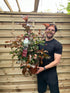 Photinia 'Magical Volcano', is an evergreen shrub with young leaves of a gorgeous red colour. This selection of the photinia branches better than the better known 'Red Robin', giving the plant more of a beautiful and fuller shape, the foliage of this plant is slightly wavy. The plant can reach a height of 175cm and is easy to prune. Prefers half a day or so of sun or more, there's no soil requirements.