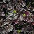Heuchera 'Dark Secret' is a striking perennial known for its dramatic, deep burgundy to nearly black foliage that adds an air of mystery and sophistication to any garden. The ruffled, rounded leaves feature a glossy sheen that intensifies in cooler weather, enhancing the plant's rich, dark colour. In late spring to early summer, delicate white or pale pink flowers emerge on tall stems, offering a soft contrast to the dark foliage. 'Dark Secret' thrives in partial to full shade and well-drained, moist soil, making it ideal for shaded borders, containers, or woodland gardens. Its bold foliage provides year-round interest, while the flowers attract pollinators like bees and butterflies. Heuchera 'Dark Secret' is a perfect choice for adding depth, contrast, and a touch of elegance to shaded or woodland areas with minimal care.