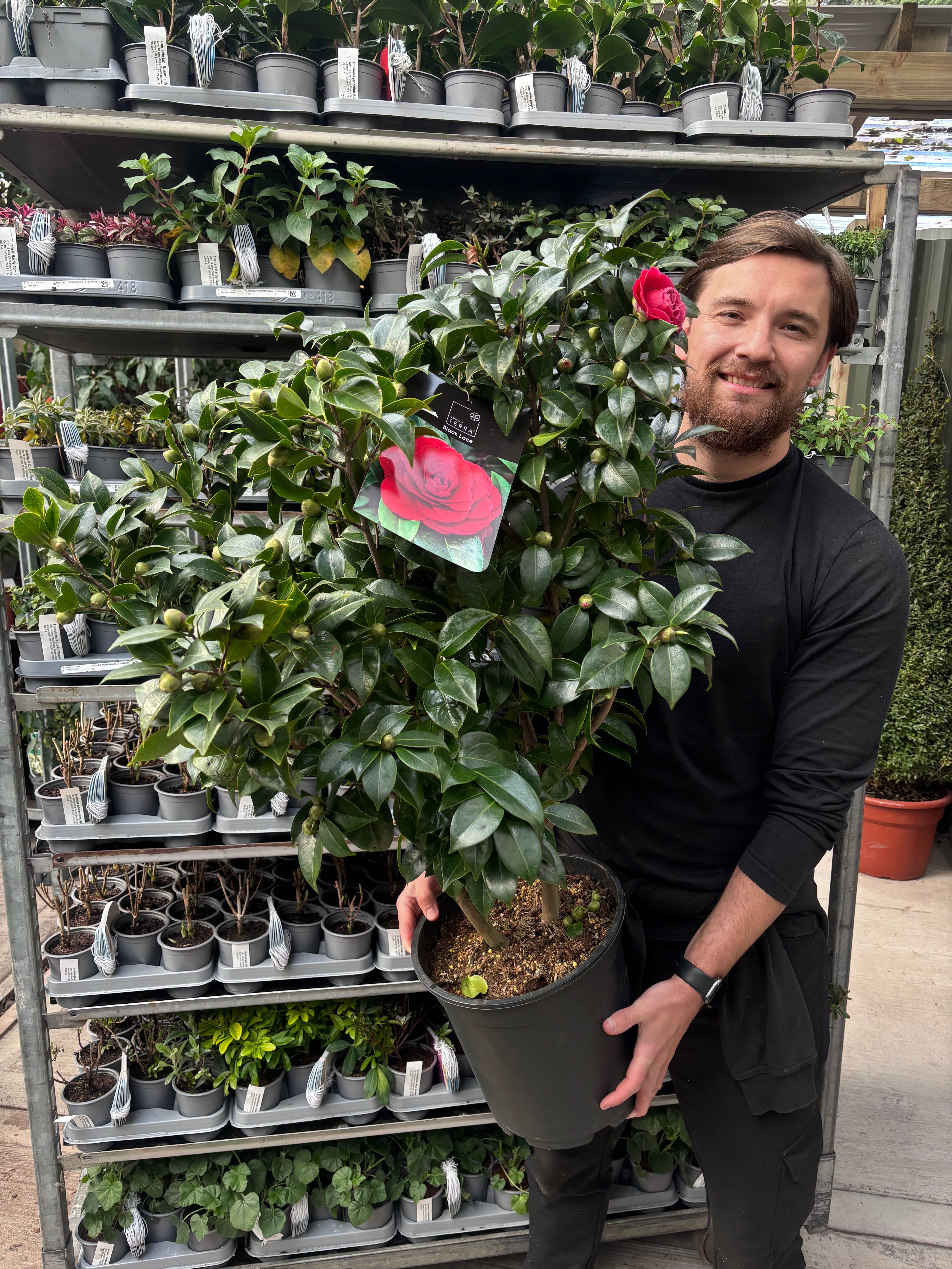 A dramatic camellia with deep red, almost black toned flowers and glossy evergreen foliage. Flowering in late winter, it adds richness and depth to planting schemes. A strong statement shrub for sheltered gardens.