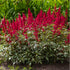 Astilbe 'Visions in Red' is a vibrant perennial that features rich, red flower plumes with a soft, feathery texture, creating a bold and dramatic display in the garden. The blooms rise above a mound of deep green, glossy foliage, providing a striking contrast. Perfect for adding colour to shady borders, woodland gardens, or mixed plantings, this variety thrives in moist, well-drained soil and partial shade. Blooming from mid to late summer, Astilbe 'Visions in Red' attracts pollinators and offers long-lasting, vibrant colour that enhances the garden through the season.