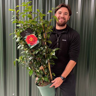 Camellia ‘Maroon and Gold’ is a stunning evergreen shrub with striking two-tone flowers that really catch the eye. From late winter into spring, it produces bold maroon-red blooms with contrasting golden-yellow centres, standing out beautifully against the glossy, dark green leaves. The rich colours bring warmth and vibrancy to the garden when little else is in flower.