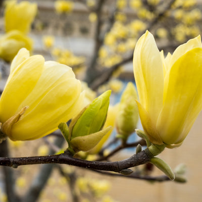 A new variety of yellow Magnolia! This relatively small tree produces fragrant yellow flowers which appear goblet shaped when borne before gracefully opening up their petals, when their petals are open they close resemble lilies!
