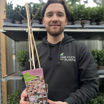 Clematis montana ‘Rubens’ is a vigorous, fast-growing climber, prized for its abundant soft pink flowers that blanket the plant in late spring to early summer. Each delicate bloom has a sweet fragrance, attracting pollinators and adding a romantic charm to pergolas, fences, and trellises. The bronze-tinted young foliage matures to deep green, providing year-round interest. Low-maintenance and easy to grow, this clematis is perfect for bringing height and colour to the garden.