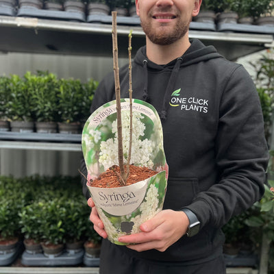 Syringa vulgaris 'Madame Lemoine' is a classic lilac variety admired for its pristine white blossoms. This time-honored shrub offers timeless beauty and a sweet fragrance, making it a beloved choice for gardens and landscapes.