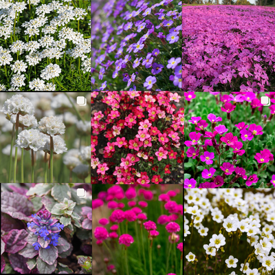 Your mix may include varieties such as Aubretia, Arabis, Saxifraga, Armeria, Ajuga, Campanula, or Phlox – all tough, sun-loving perennials that thrive in well-drained soil. Each one offers its own season of colour, from early spring right through to summer, giving you a constantly changing display.