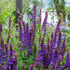 Salvia 'Salvatore Blue' is a captivating perennial that enchants gardeners with its stunning azure-blue flowers and aromatic foliage. This Salvia features elongated spikes adorned with abundant blossoms that bloom profusely from late spring to early autumn, creating a breathtaking display reminiscent of the Mediterranean coastline. The vibrant blue blooms rise above a mound of lush green foliage, adding a pop of colour and elegance to garden borders, containers, and cottage-style plantings.