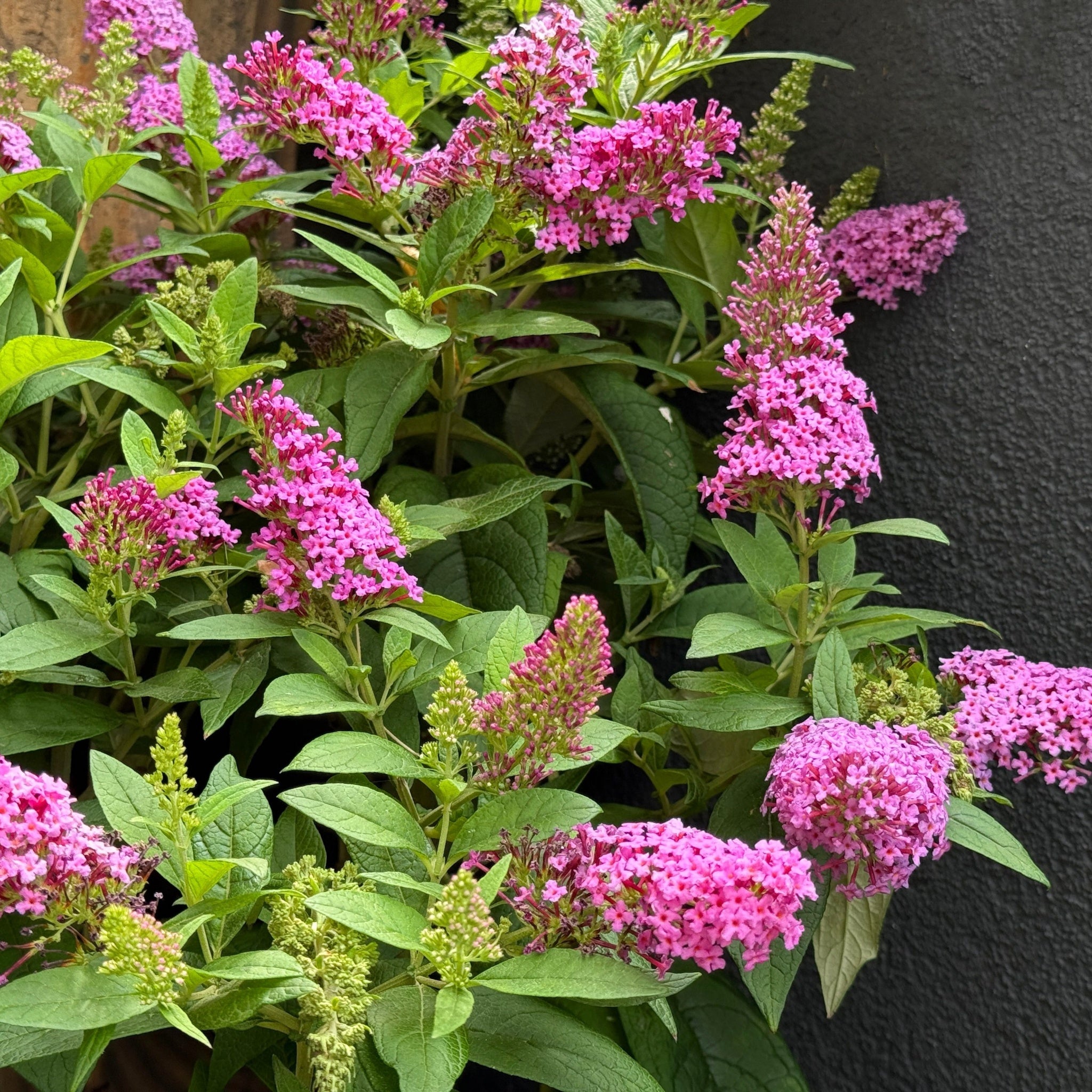 This compact buddleja produces vibrant cerise pink flower spikes that sit neatly above soft grey green foliage. It brings the much loved butterfly bush look into smaller spaces, making it ideal for patios, borders, and containers. Flowers appear continuously through summer when planted in a sunny spot.