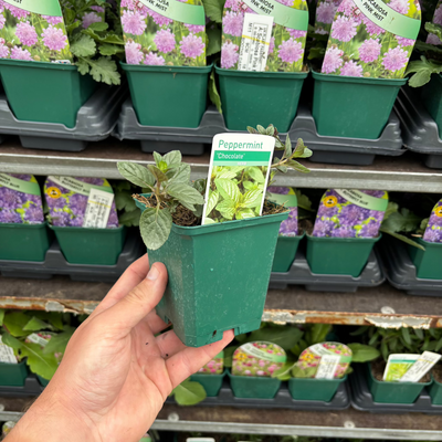 A delicious twist on a classic, Chocolate Peppermint (Mentha × piperita 'Chocolate') combines the fresh zing of peppermint with subtle hints of cocoa – perfect for anyone with a sweet tooth. It’s ideal for flavouring desserts, teas, and even hot chocolate, while its deep green leaves and purplish stems add a lovely touch to any herb planter.