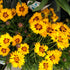 Coreopsis grandiflora 'Sunfire' is a radiant perennial known for its bright yellow, daisy-like flowers adorned with deep red centres, creating a striking two-toned effect. The blooms sit atop slender stems above a mound of fine, green foliage, bringing vibrancy and texture to the garden. Blooming prolifically from early summer to autumn, this sun-loving plant thrives in well-drained soil and is drought-tolerant once established. Coreopsis 'Sunfire' attracts pollinators such as bees and butterflies, making it an excellent choice for borders, cottage gardens, or containers, where its cheerful display adds warmth and energy to any landscape.