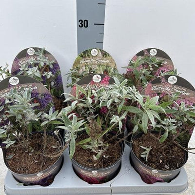 Beautiful butterfly bushes with sturdy, double flower panicles that are available in several colours,. The great thing about this selection is it's compact growth, so that the butterflies, which flock the flowers, can be admired well. Butterfly bushes love a sunny spot on well-drained soil.