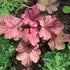 Heuchera 'Berry Smoothie' is a captivating perennial that features vibrant, rich berry-toned foliage, transitioning from deep magenta to a softer pinkish-red as the season progresses. The broad, rounded leaves have a velvety texture, offering an alluring contrast to its delicate, light-pink to white flowers, which appear in late spring to early summer on tall stems. This variety thrives in partial to full shade and prefers well-drained, moist soil, making it perfect for shady borders, containers, or woodland gardens. The striking foliage adds dramatic colour to the garden year-round, while its flowers attract pollinators like bees and butterflies. Heuchera 'Berry Smoothie' is an excellent choice for low-maintenance gardens, providing both beauty and texture with its bold, long-lasting colour.